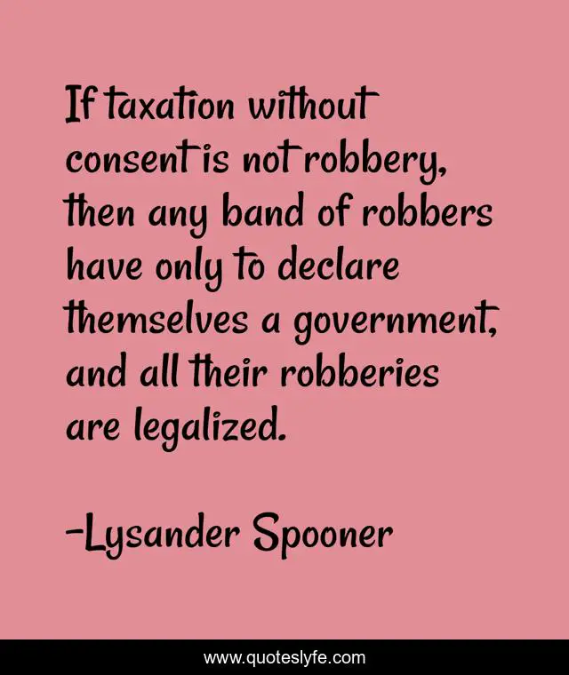 "Lysander Spooner Quotes." Quoteslyfe.com, 2025. Fri. 05 Dec. 2025. <https://www.quoteslyfe.com/quote/If-taxation-without-consent-is-not-robbery-191218>.