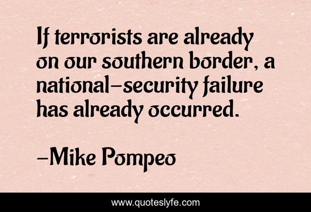 This page presents the quote "If terrorists are already on our southern border, a national-security failure has already occurred.". Author of this quote is Mike Pompeo. This quote is about southern, border, occurred,.