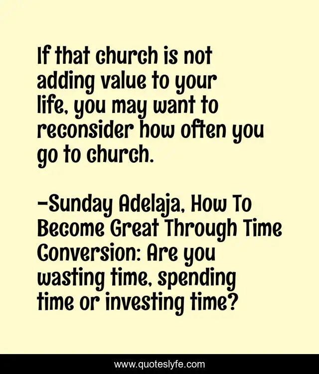 "Sunday Adelaja, How To Become Great Through Time Conversion: Are you wasting time, spending time or investing time? Quotes." Quoteslyfe.com, 2025. Fri. 05 Dec. 2025. <https://www.quoteslyfe.com/quote/If-that-church-is-not-adding-value-39286>.