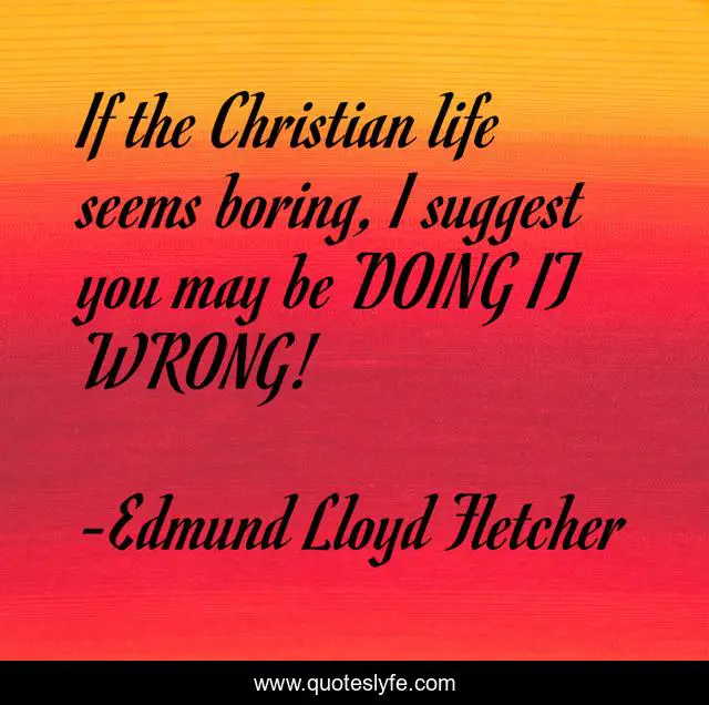 "Edmund Lloyd Fletcher Quotes." Quoteslyfe.com, 2025. Fri. 05 Dec. 2025. <https://www.quoteslyfe.com/quote/If-the-Christian-life-seems-boring-I-84917>.