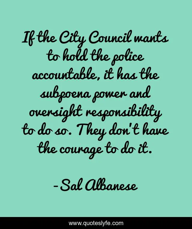 This page presents the quote "If the City Council wants to hold the police accountable, it has the subpoena power and oversight responsibility to do so. They don't have the courage to do it.". Author of this quote is Sal Albanese. This quote is about city, responsibility, power,.