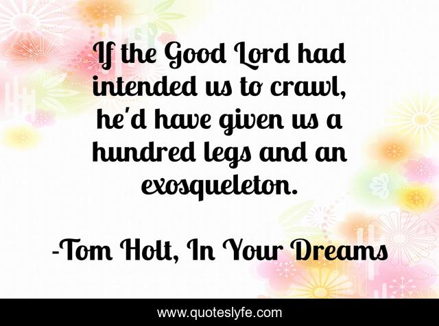 This page presents the quote "If the Good Lord had intended us to crawl, he'd have given us a hundred legs and an exosqueleton.". Author of this quote is Tom Holt, In Your Dreams. .