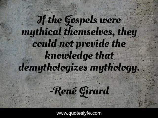 This page presents the quote "If the Gospels were mythical themselves, they could not provide the knowledge that demythologizes mythology.". Author of this quote is René Girard. This quote is about gospel, mythology,.