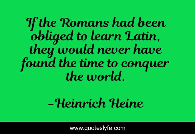 This page presents the quote "If the Romans had been obliged to learn Latin, they would never have found the time to conquer the world.". Author of this quote is Heinrich Heine. This quote is about latin, language,.