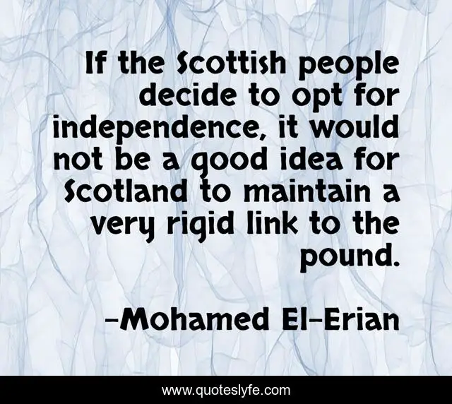 This page presents the quote "If the Scottish people decide to opt for independence, it would not be a good idea for Scotland to maintain a very rigid link to the pound.". Author of this quote is Mohamed El-Erian. This quote is about good, idea, people,.