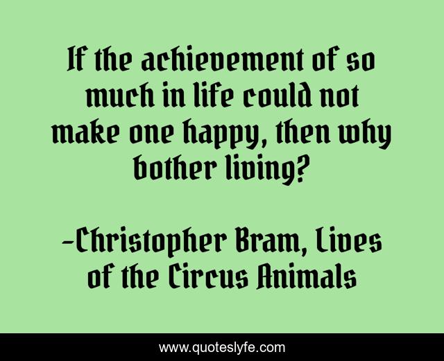 This page presents the quote "If the achievement of so much in life could not make one happy, then why bother living?". Author of this quote is Christopher Bram, Lives of the Circus Animals. This quote is about existentialism, depression,.