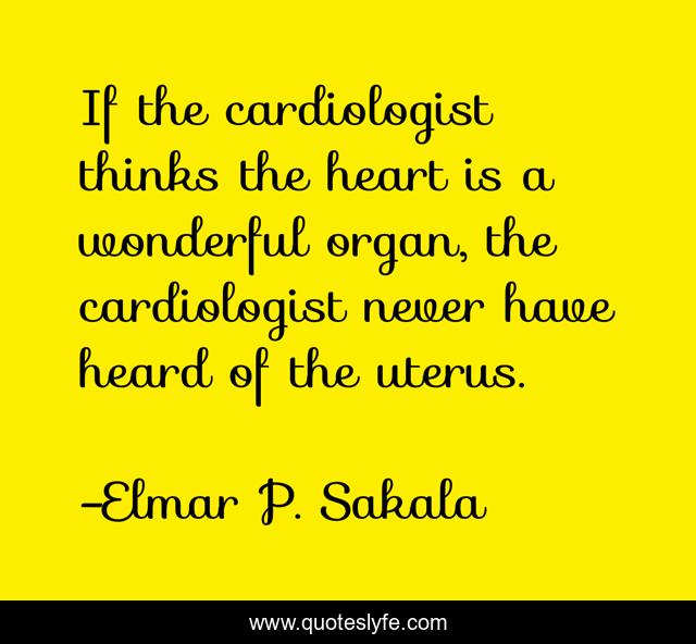 This page presents the quote "If the cardiologist thinks the heart is a wonderful organ, the cardiologist never have heard of the uterus.". Author of this quote is Elmar P. Sakala. This quote is about medicine, uterus, obstetrics,.