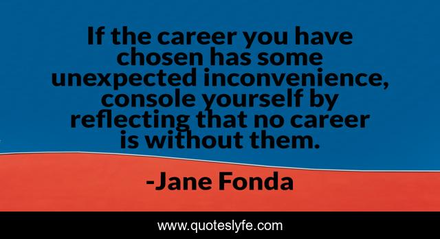 This page presents the quote "If the career you have chosen has some unexpected inconvenience, console yourself by reflecting that no career is without them.". Author of this quote is Jane Fonda. This quote is about unexpected, yourself,.