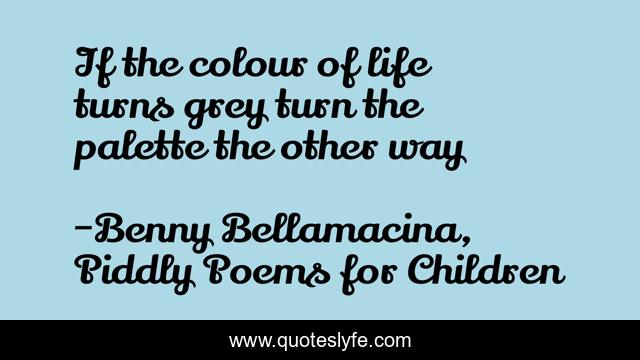 This page presents the quote "If the colour of life turns grey turn the palette the other way". Author of this quote is Benny Bellamacina, Piddly Poems for Children. This quote is about children-s-books, philosophical, poetry, humour,.