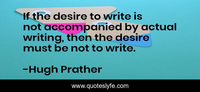 This page presents the quote "If the desire to write is not accompanied by actual writing, then the desire must be not to write.". Author of this quote is Hugh Prather. .