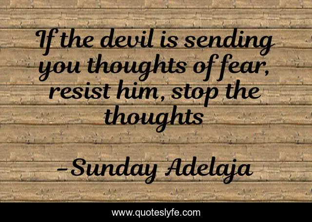 This page presents the quote "If the devil is sending you thoughts of fear, resist him, stop the thoughts". Author of this quote is Sunday Adelaja. This quote is about sending, devil, stop, resist, fear, thoughts,.