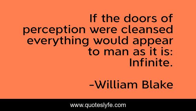 This page presents the quote "If the doors of perception were cleansed everything would appear to man as it is: Infinite.". Author of this quote is William Blake. This quote is about perception, infinity,.