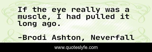This page presents the quote "If the eye really was a muscle, I had pulled it long ago.". Author of this quote is Brodi Ashton, Neverfall. This quote is about reading-books, cole, truth-of-life,.