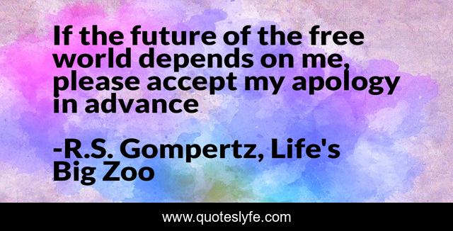 This page presents the quote "If the future of the free world depends on me, please accept my apology in advance". Author of this quote is R.S. Gompertz, Life's Big Zoo. This quote is about jewish, ya, coming-of-age, humor,.