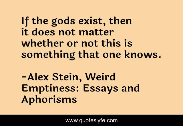 "Alex Stein, Weird Emptiness: Essays and Aphorisms Quotes." Quoteslyfe.com, 2025. Sun. 07 Dec. 2025. <https://www.quoteslyfe.com/quote/If-the-gods-exist-then-it-does-31613>.