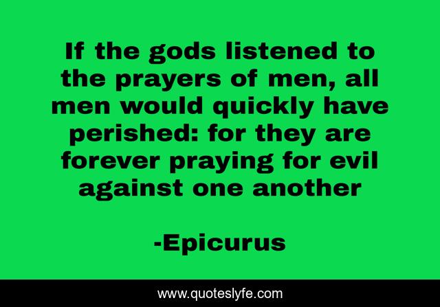 This page presents the quote "If the gods listened to the prayers of men, all men would quickly have perished: for they are forever praying for evil against one another". Author of this quote is Epicurus. .
