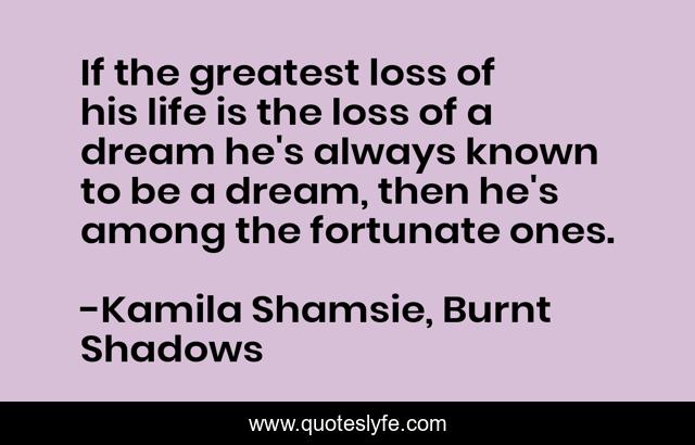 This page presents the quote "If the greatest loss of his life is the loss of a dream he's always known to be a dream, then he's among the fortunate ones.". Author of this quote is Kamila Shamsie, Burnt Shadows. This quote is about loss, life, dreams,.