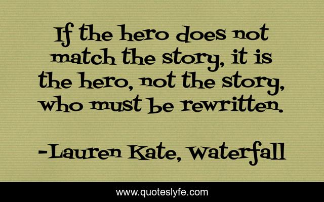 This page presents the quote "If the hero does not match the story, it is the hero, not the story, who must be rewritten.". Author of this quote is Lauren Kate, Waterfall. This quote is about story, hero,.
