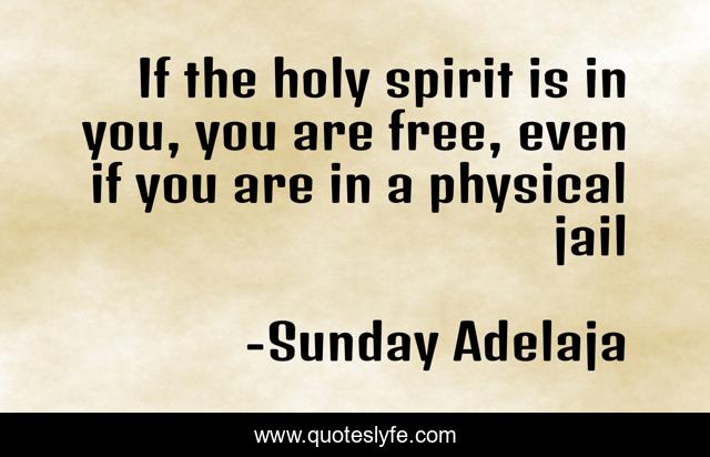 This page presents the quote "If the holy spirit is in you, you are free, even if you are in a physical jail". Author of this quote is Sunday Adelaja. This quote is about holy-spirit, jail, free, physical,.