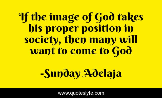 This page presents the quote "If the image of God takes his proper position in society, then many will want to come to God". Author of this quote is Sunday Adelaja. This quote is about proper, god, image, position, society,.