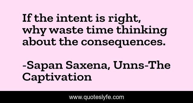This page presents the quote "If the intent is right, why waste time thinking about the consequences.". Author of this quote is Sapan Saxena, Unns-The Captivation. This quote is about life, life-lessons,.