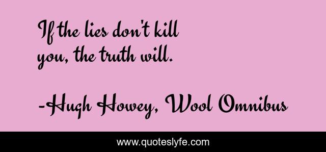 "Hugh Howey, Wool Omnibus Quotes." Quoteslyfe.com, 2025. Mon. 08 Dec. 2025. <https://www.quoteslyfe.com/quote/If-the-lies-don-t-kill-you-157495>.