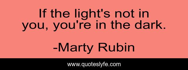 This page presents the quote "If the light's not in you, you're in the dark.". Author of this quote is Marty Rubin. This quote is about self-sufficiency, independence,.