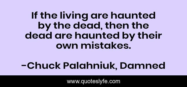 This page presents the quote "If the living are haunted by the dead, then the dead are haunted by their own mistakes.". Author of this quote is Chuck Palahniuk, Damned. This quote is about living, mistakes, haunted, dead,.