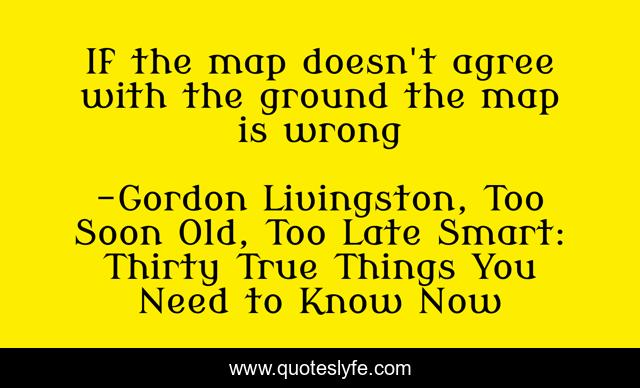 This page presents the quote "If the map doesn't agree with the ground the map is wrong". Author of this quote is Gordon Livingston, Too Soon Old, Too Late Smart: Thirty True Things You Need to Know Now. This quote is about believe-in-yourself, deception, self-esteem,.