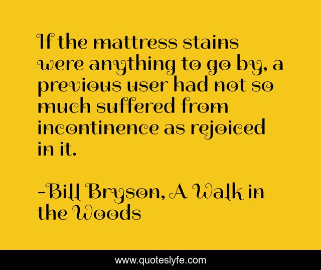 "Bill Bryson, A Walk in the Woods Quotes." Quoteslyfe.com, 2025. Fri. 05 Dec. 2025. <https://www.quoteslyfe.com/quote/If-the-mattress-stains-were-anything-to-149908>.