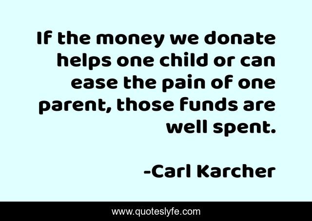 This page presents the quote "If the money we donate helps one child or can ease the pain of one parent, those funds are well spent.". Author of this quote is Carl Karcher. This quote is about pain, parent, child,.