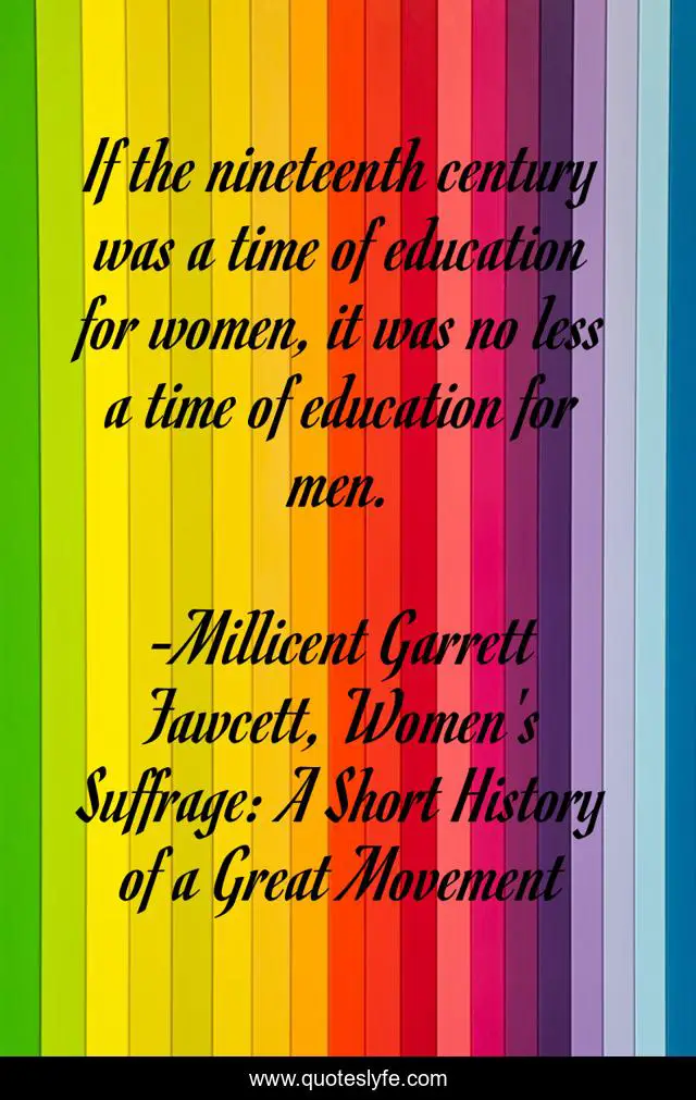 "Millicent Garrett Fawcett, Women's Suffrage: A Short History of a Great Movement Quotes." Quoteslyfe.com, 2025. Fri. 05 Dec. 2025. <https://www.quoteslyfe.com/quote/If-the-nineteenth-century-was-a-time-34487>.