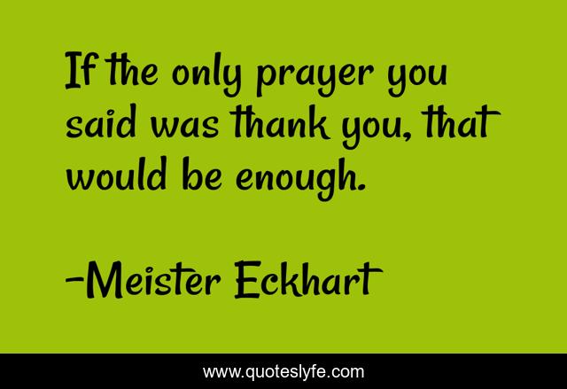 This page presents the quote "If the only prayer you said was thank you, that would be enough.". Author of this quote is Meister Eckhart. This quote is about gratitude, prayer,.