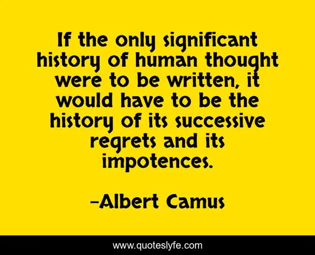 This page presents the quote "If the only significant history of human thought were to be written, it would have to be the history of its successive regrets and its impotences.". Author of this quote is Albert Camus. This quote is about history, human-thought, impotence,.