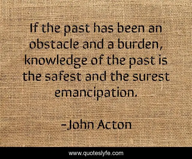 This page presents the quote "If the past has been an obstacle and a burden, knowledge of the past is the safest and the surest emancipation.". Author of this quote is John Acton. This quote is about past, obstacle, burden,.