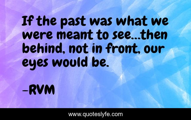 This page presents the quote "If the past was what we were meant to see…then behind, not in front, our eyes would be.". Author of this quote is RVM. This quote is about motivation, inspiration,.