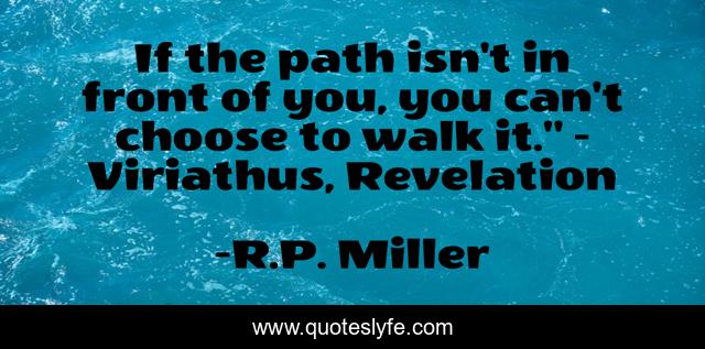 This page presents the quote "If the path isn't in front of you, you can't choose to walk it." - Viriathus, Revelation". Author of this quote is R.P. Miller. This quote is about fantasy, advice, viridian,.
