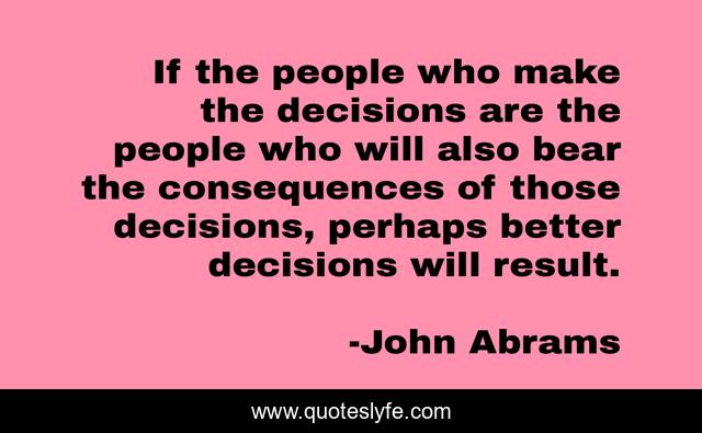 This page presents the quote "If the people who make the decisions are the people who will also bear the consequences of those decisions, perhaps better decisions will result.". Author of this quote is John Abrams. .