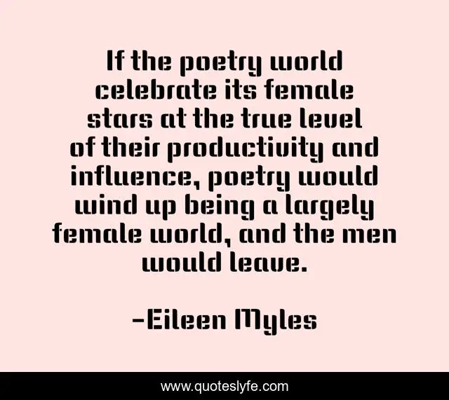 "Eileen Myles Quotes." Quoteslyfe.com, 2025. Tue. 09 Dec. 2025. <https://www.quoteslyfe.com/quote/If-the-poetry-world-celebrate-its-female-326027>.