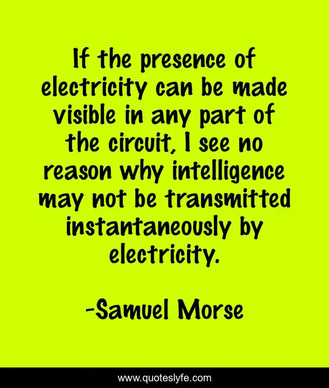 "Samuel Morse Quotes." Quoteslyfe.com, 2025. Mon. 08 Dec. 2025. <https://www.quoteslyfe.com/quote/If-the-presence-of-electricity-can-be-298271>.