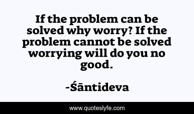 This page presents the quote "If the problem can be solved why worry? If the problem cannot be solved worrying will do you no good.". Author of this quote is Śāntideva. This quote is about buddha, problem, solve, stress, worry,.