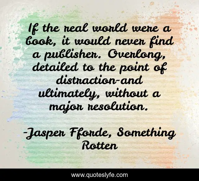"Jasper Fforde, Something Rotten Quotes." Quoteslyfe.com, 2025. Sun. 07 Dec. 2025. <https://www.quoteslyfe.com/quote/If-the-real-world-were-a-book-1907>.