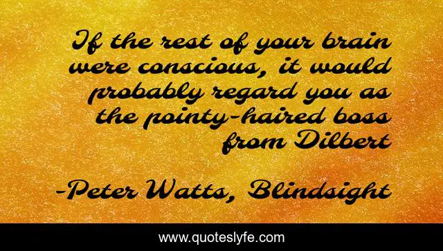 This page presents the quote "If the rest of your brain were conscious, it would probably regard you as the pointy-haired boss from Dilbert". Author of this quote is Peter Watts, Blindsight. .