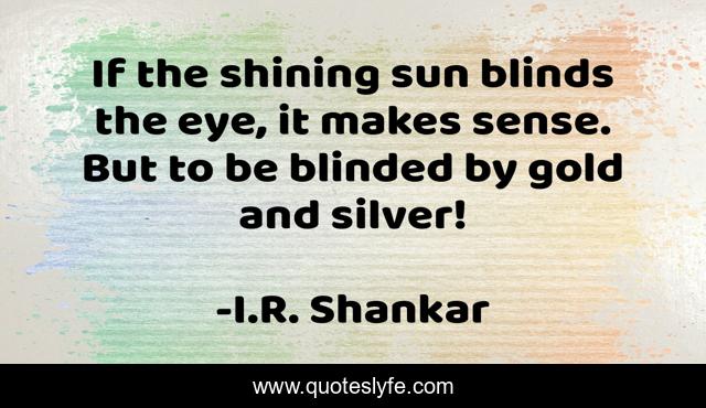 This page presents the quote "If the shining sun blinds the eye, it makes sense. But to be blinded by gold and silver!". Author of this quote is I.R. Shankar. This quote is about romance, i-r-shankar, fiction, novels,.