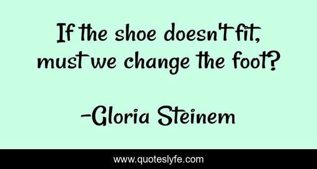 This page presents the quote "If the shoe doesn't fit, must we change the foot?". Author of this quote is Gloria Steinem. This quote is about shoe, fit,.