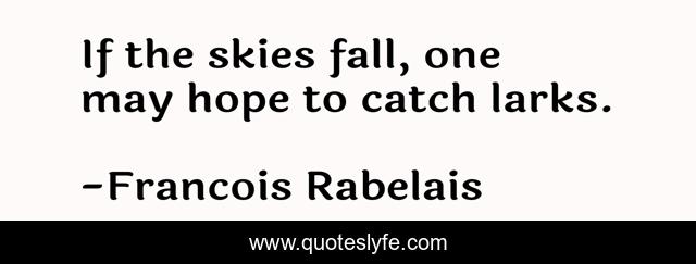 This page presents the quote "If the skies fall, one may hope to catch larks.". Author of this quote is Francois Rabelais. This quote is about may, skies, fall,.