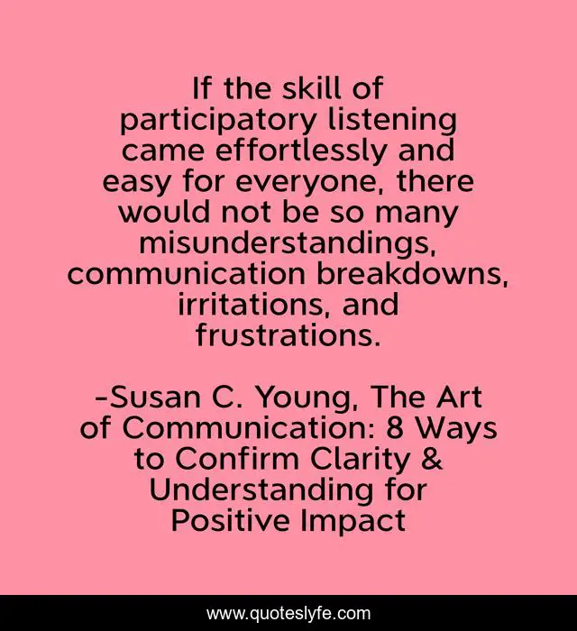 "Susan C. Young, The Art of Communication: 8 Ways to Confirm Clarity & Understanding for Positive Impact Quotes." Quoteslyfe.com, 2025. Sat. 06 Dec. 2025. <https://www.quoteslyfe.com/quote/If-the-skill-of-participatory-listening-came-233438>.