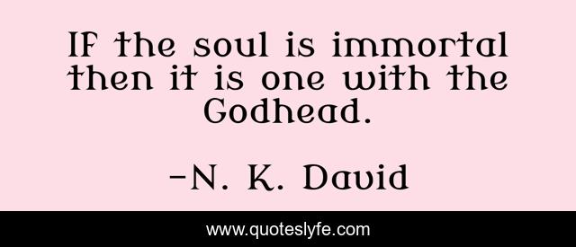 This page presents the quote "If the soul is immortal then it is one with the Godhead.". Author of this quote is N. K. David. This quote is about mystery, occult, rebirth, reincarnation, soul, immortality-of-the-soul,.