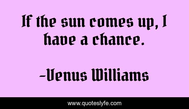 This page presents the quote "If the sun comes up, I have a chance.". Author of this quote is Venus Williams. This quote is about sun, up,.