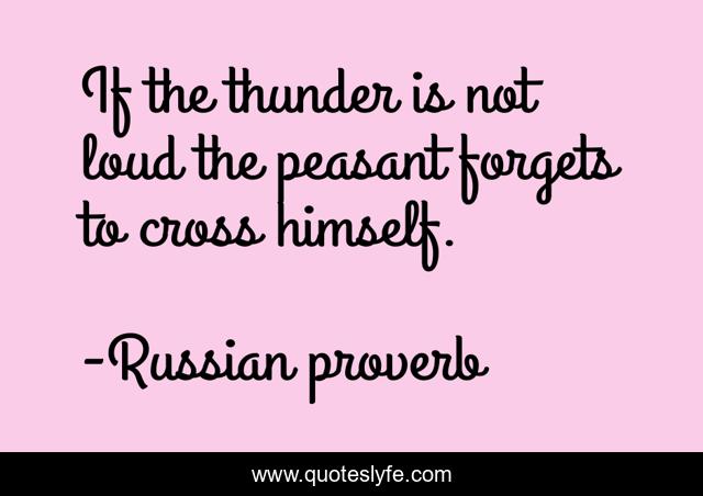 This page presents the quote "If the thunder is not loud the peasant forgets to cross himself.". Author of this quote is Russian proverb. .